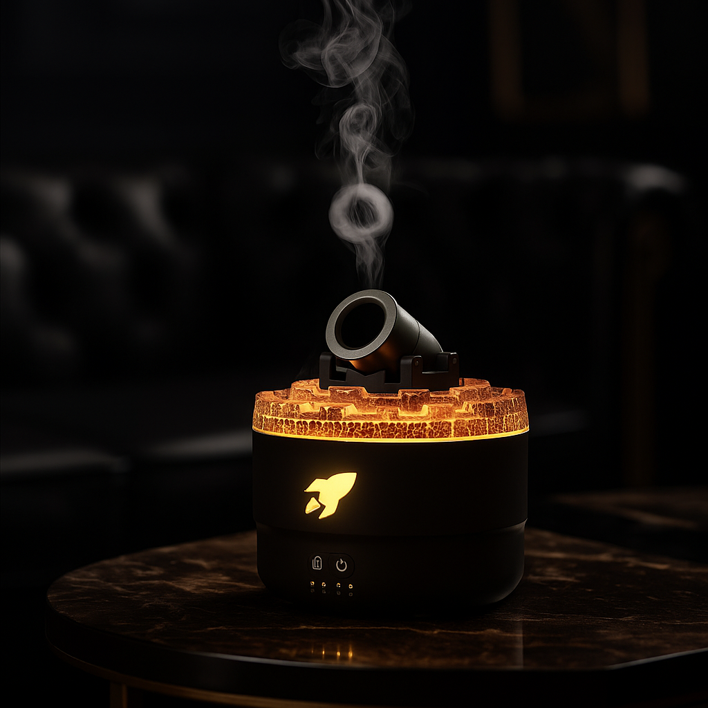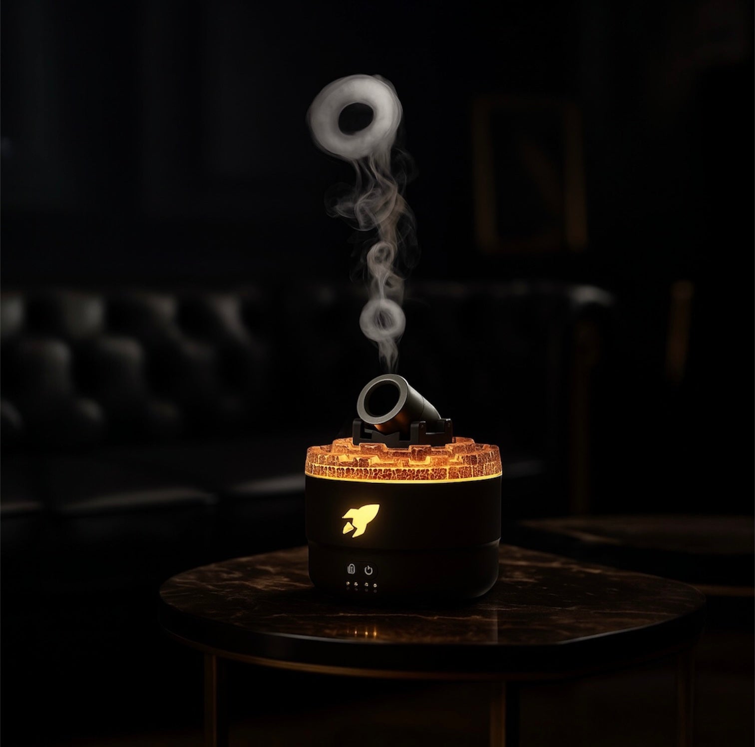 En la base observarás una visualización realista de lava en forma circular, el cañón lanza a propulsión el silencioso y relajante humo aromático en formas de aros